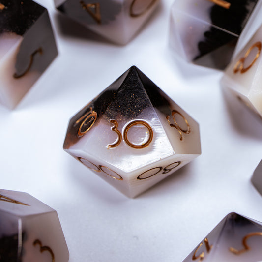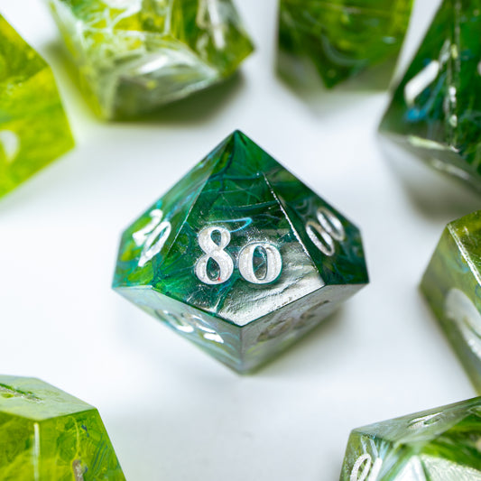 Are you in search of something truly unique? Or trying to raise an old design from the dead? Look no further! I craft bespoke artisanal dice sets, tailored to your tales. Whether you seek the shine and shimmer or something more rustic or natural - nigh anything is possible!